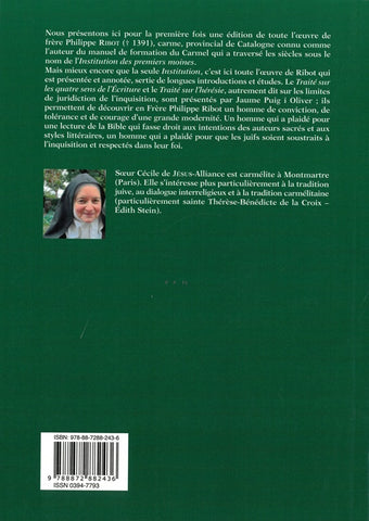 Mais mieux encore que la seule Institution, c'est ici toute l'œuvre de Ribot qui est présentée et annotée, sertie de longues introductions et études. Le Traité sur les quatre sens de l'Écriture et le Traité sur l'hérésie, autrement dit sur les limites de juridiction de l'inquisition, sont présentés par Jaume Puig i Oliver ; ils permettent de découvrir en Frère Philippe Ribot un homme de conviction, de tolérance et de courage d'une grande modernité. Un homme qui a plaidé pour une lecture de la Bible qui fasse droit aux intentions des auteurs sacrés et aux styles littéraires, un homme qui a plaidé pour que les juifs soient soustraits à l'inquisition et respectés dans leur foi.